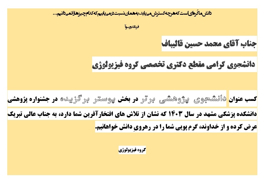 24 دی 1403 30 تیر 1404 بازدید: 68 امتیاز: ( 0 Rating ) دانشجوی پژوهشیِ برتر در جشنواره پژوهشی دانشکده امتیاز کاربران لطفا رای دهید رای 1 رای 2 رای 3 رای 4 رای 5 قبلی بعدی